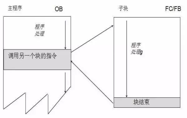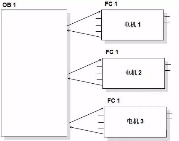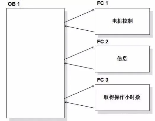模块化编程中OB1起着主程序的作用,FC或FB控制着不同的过程任务,相当于主循环程序的子程序。模块化编程中被调用块不向调用块返回数据。
