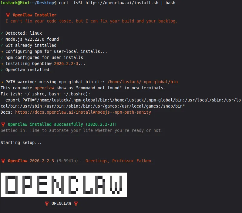 curl -fsSL https://openclaw.ai/install.sh | bash