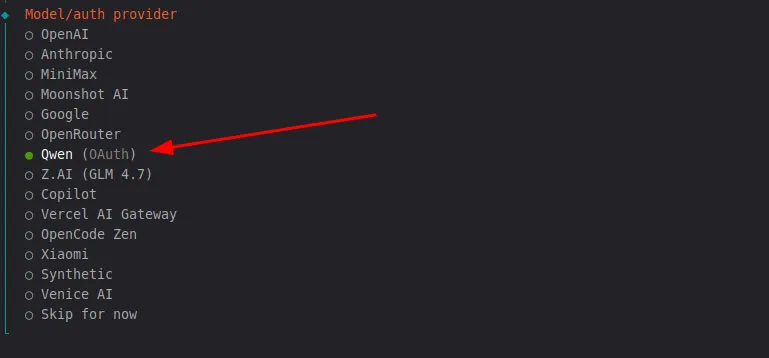 Qwen QAuth,回车之后会打开浏览器,登录授权即可)