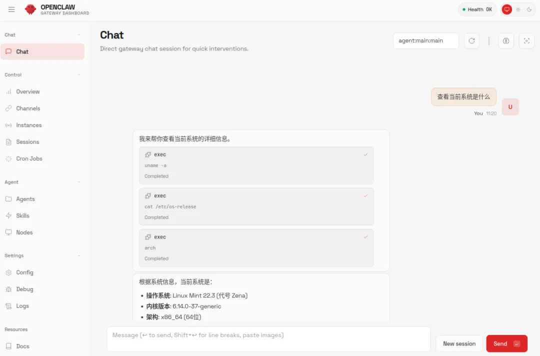 # 查看状态openclaw status# 需要重新配置的话可以输入下面命令openclaw onboard# 修改完配置需要重启gatewayopenclaw gateway stop|start|restart# 插件相关openclaw plugins
