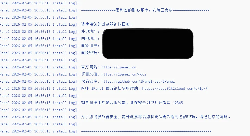 1Panel已成功安装访问地址: <http://目标服务器IP地址>:目标端口/安全入口用户名: admin密码: your_password