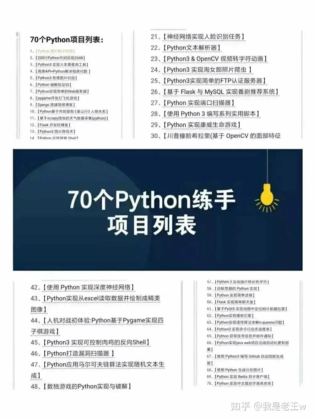 下面就给大家介绍70个通过Python构建的项目,以此来学习Python编程。