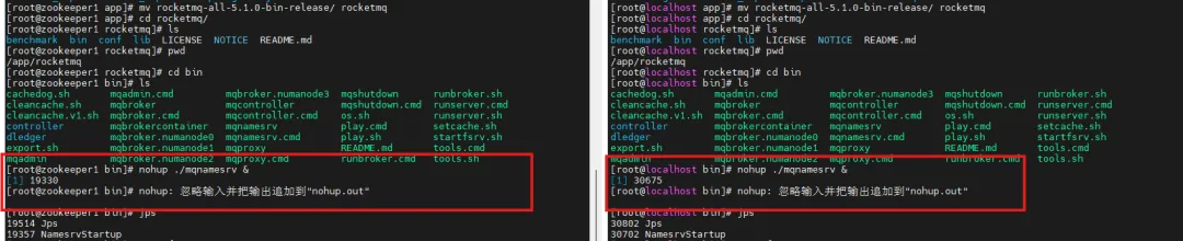 nohup bin/mqnamesrv > logs/namesrv.log 2>&1 &