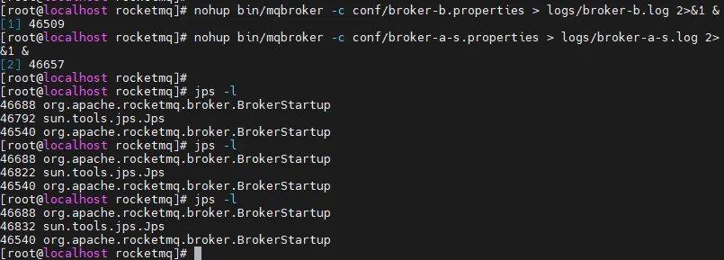 nohup bin/mqbroker -c conf/broker-a.properties > logs/broker-a.log 2>&1 &