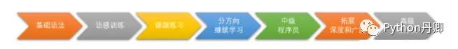 接下来我给出前辈许向武老师推荐的Python程序员成长路线图,包括:基础语法–>语感训练–>课题练习–>分方向继续学习–>中级程序员–>拓展深度和广度–>高级程序员。