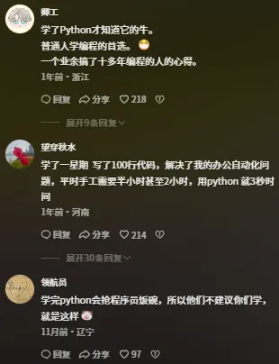 其实python能自动化办公 / 爬取信息、做数据分析 / 开发网站,还能入门 AI / 做趣味小项目,职场提效、搞副业,涉及很多方面#编程#python#大数据#数据库#新手学编程