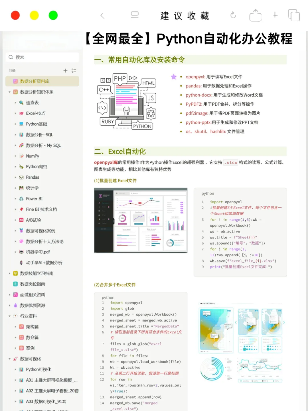 今天给大家整理了Python的自动化办公教程,让你实现高效办公!