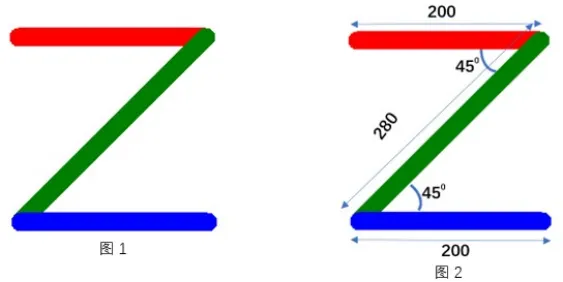 编写程序,绘制如图1所示的Z形图形,画笔宽度为20,起始位置为(-50,100),其他尺寸说明如图2所示。