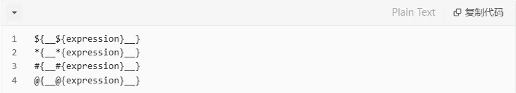 早期版本:几乎无严格沙箱,直接用 T(java.lang.Runtime) 等即可 RCE,无需复杂绕过。