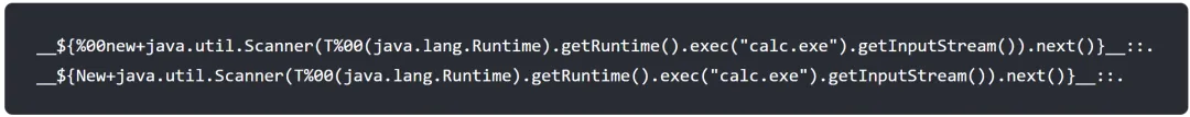 通过%00绕过与大写New有些许不同,Java 中,字符串以%00作为内部终止符。 当表达式字符串中出现%00时,检测器只看到 ${%00 之前的部分,不会检测到“new”,因而绕过了检测。