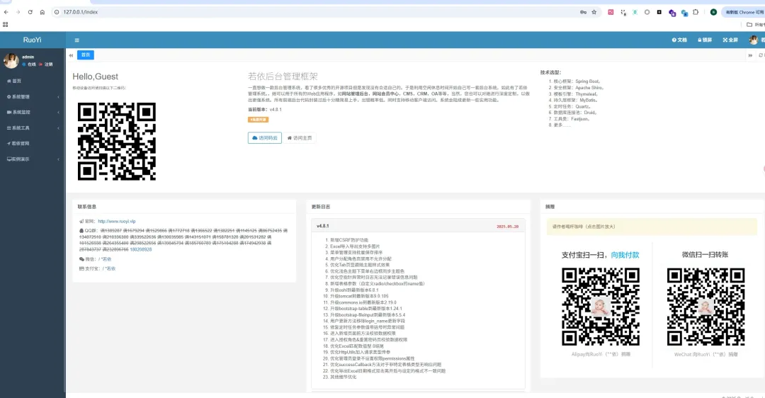 部署成功,登录至后台界面