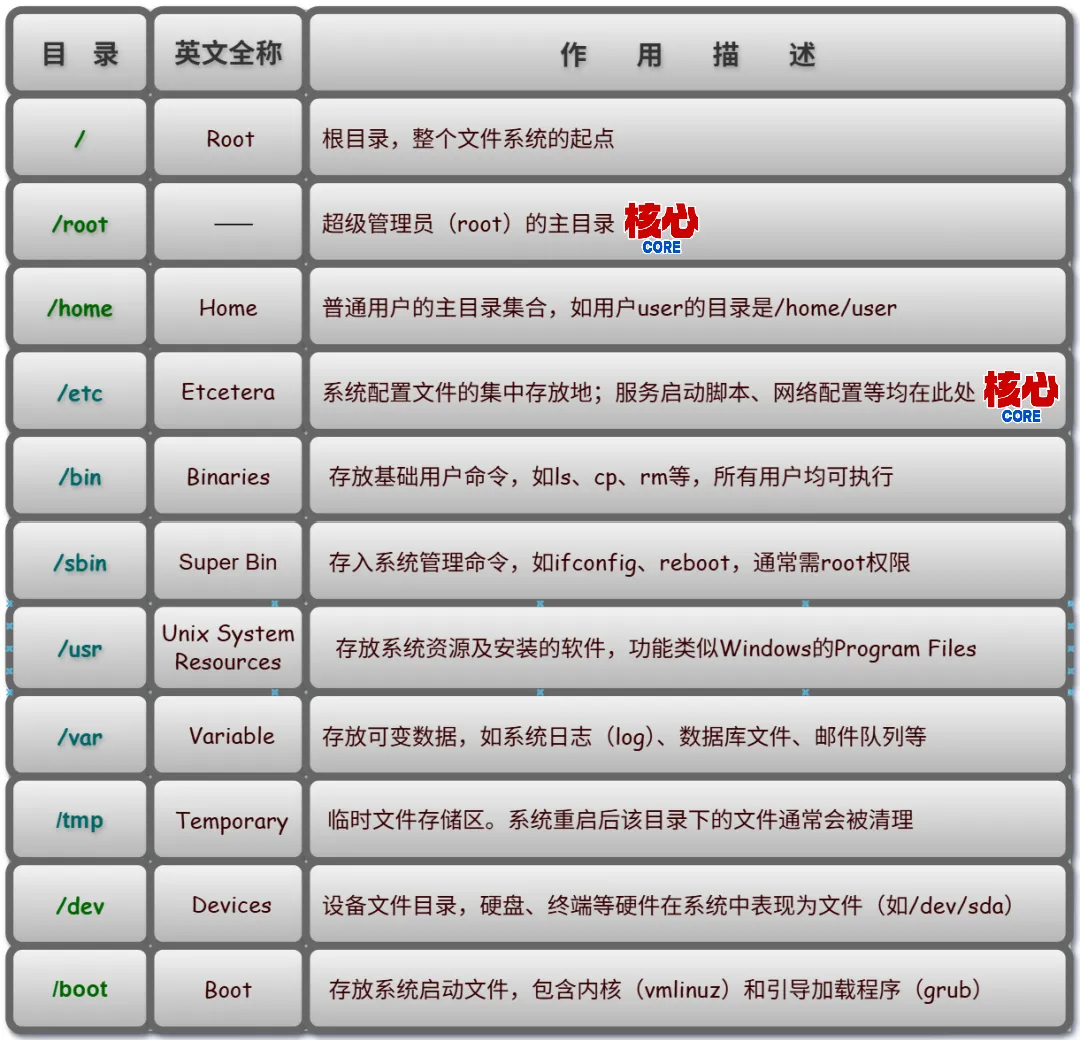 - FHS标准:遵循Filesystem Hierarchy Standard标准,保证系统的一致性和可维护性。