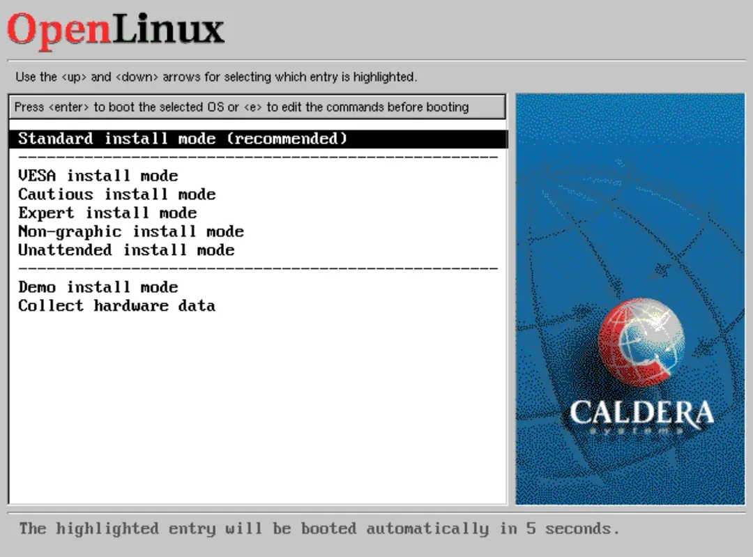 Caldera公司由前Novell员工创立,最初基于德国的LST Power Linux发行版,1997年推出OpenLinux 1.0。它定位企业级:附带印刷手册、完整的技术支持、强调稳定性和可预测性。界面保守、配置稳健,安装程序LISA(Linux Installation and System Administration)在当时算得上先进,支持图形化分区和网络配置。