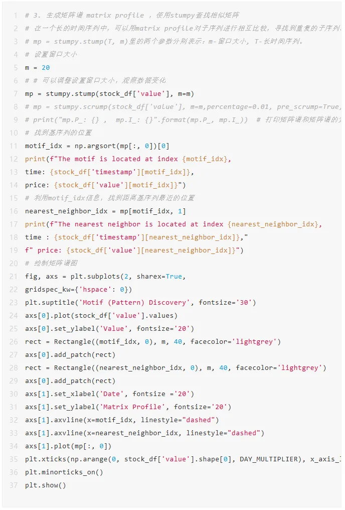 计算Matrix Profile:对历史股价序列计算每个子序列的最相似序列