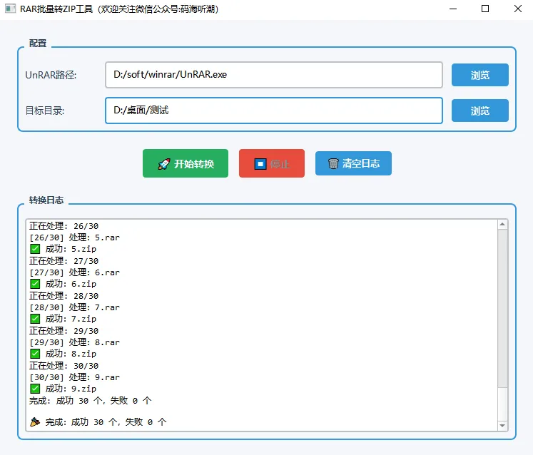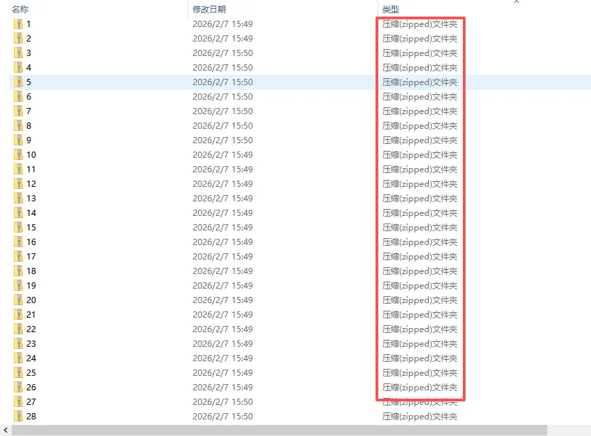 2.对rar文件逐个打开、解压、再重新压缩为zip文件→