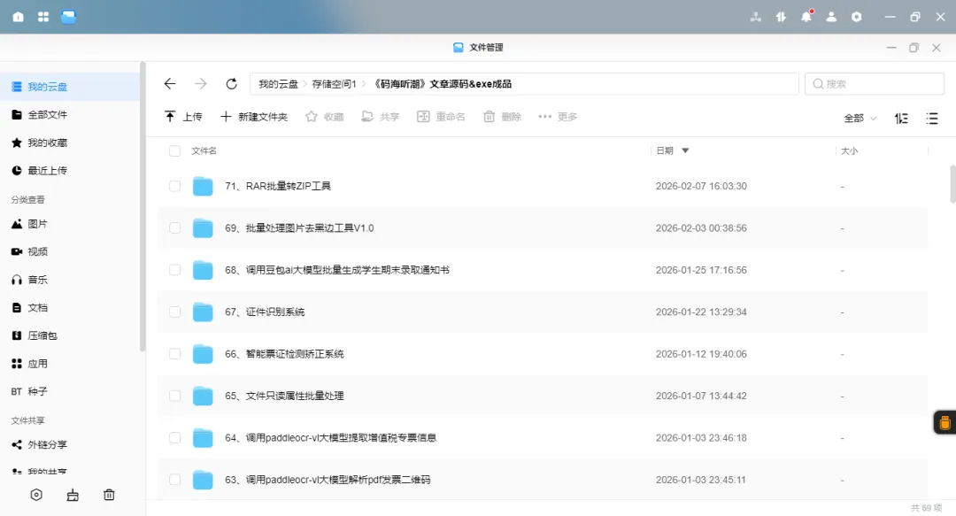另外,《码海听潮》公众号所有文章码和exe程序已打包好上传绿联nas私有云,有需要的大佬扫一扫上面博主的个人微信二维码,需要的大佬需支付9.9元永久拥有公众号资源(写原创干货费时费力,属实不易),邀请您进入社区群获取下载链接!!,群内提供python办公自动化交流问题,解决问题,且码海听潮微信公众号文章发布会第一时间会更新到群里,非诚勿扰哈!