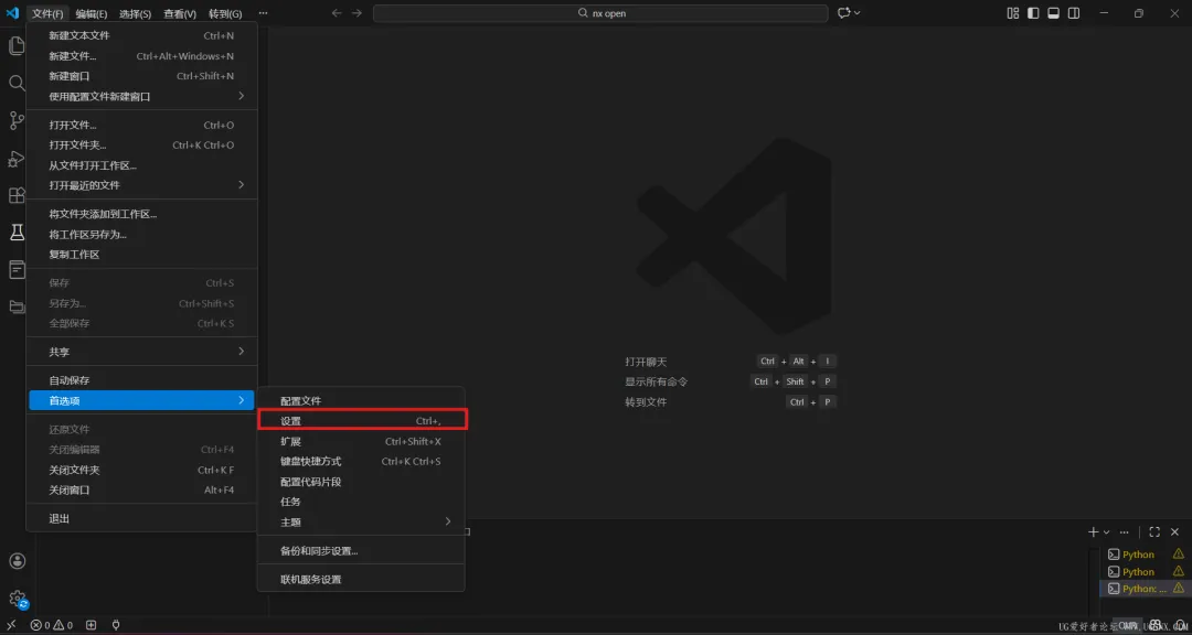 第一步:在Visual Studio Code中找到设置