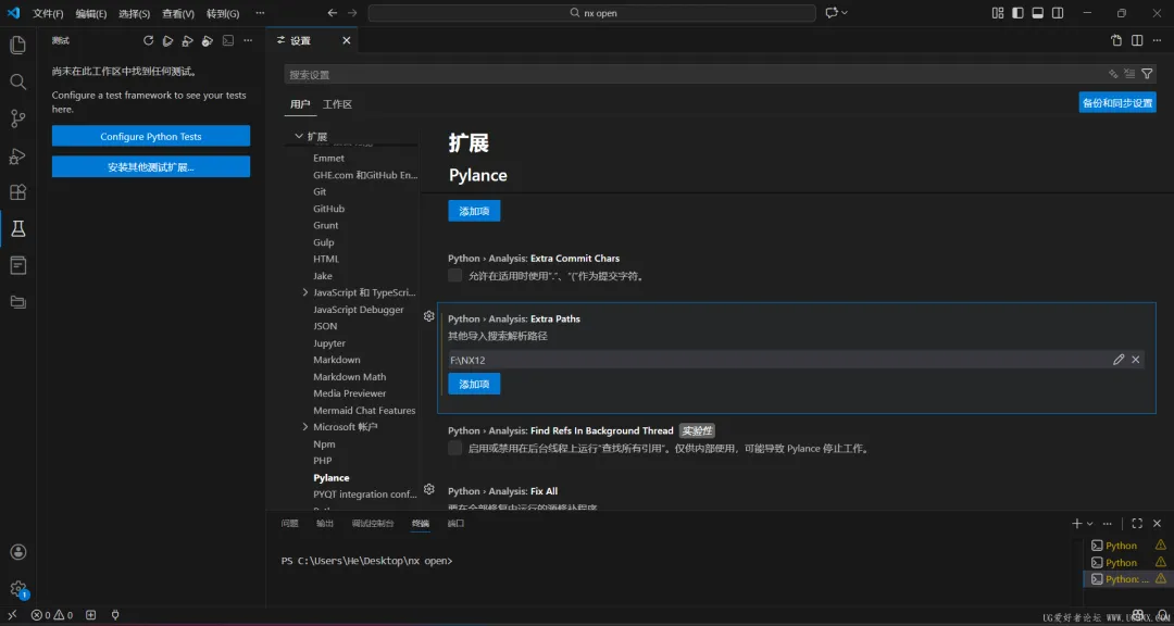 第二步:在扩展设置中找到pylance找到Analysis: Extra Paths