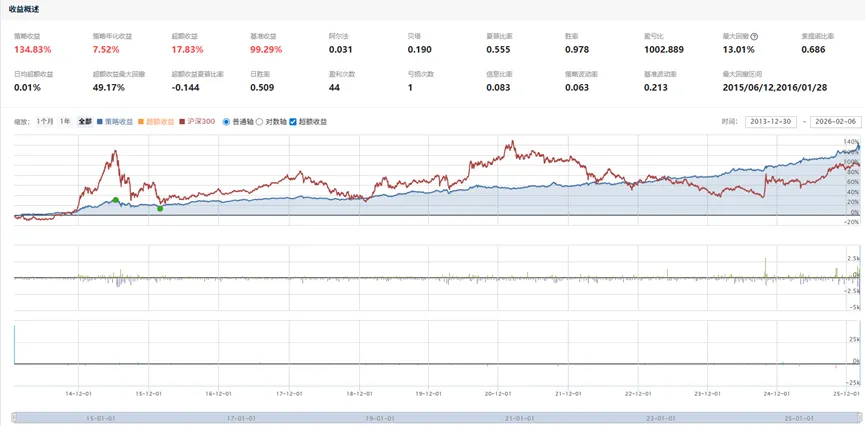 有些朋友可能会想,组合表现这么优异是否仅仅因为恰好买入了黄金,它的涨幅带动了组合的上涨?的确,仅仅三年说明不了什么。我们可以切换将时间拉长。下面回测了从14年1月1日至26年2月6日,永久组合的表现: