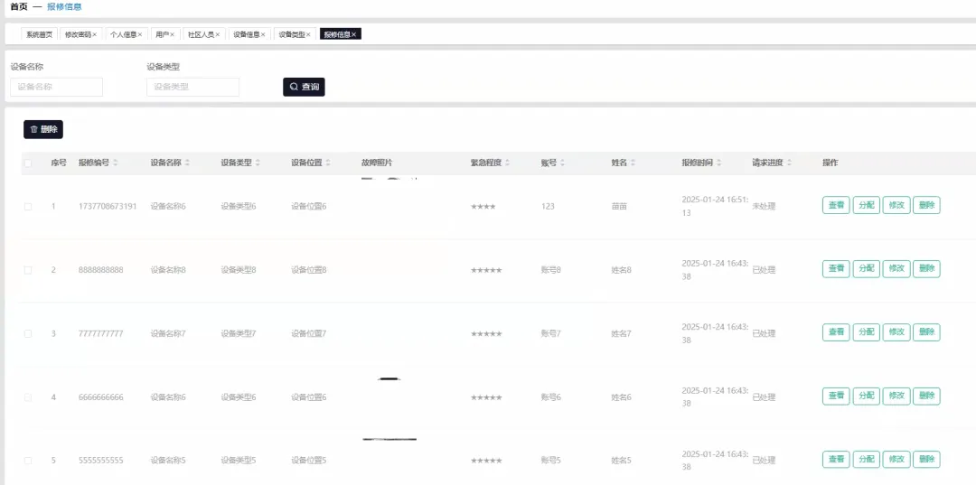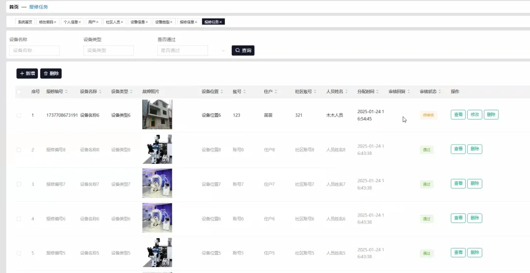 # 核心功能1: 基于Spark的设备故障概率离线预测模型def predict_device_failures(): from pyspark.sql import SparkSession from pyspark.ml.feature import VectorAssembler from pyspark.ml.regression import LinearRegression from pyspark.sql.functions import col, when, datediff, current_date, lit spark = SparkSession.builder.appName("DeviceFailurePrediction").getOrCreate() # 模拟从MySQL加载历史维修记录和设备信息 data = [ (1, "电梯A", 365, 30, 5, 1), (2, "路灯B", 180, 10, 2, 0), (3, "电梯A", 400, 5, 6, 1), (4, "门禁C", 90, 60, 1, 0), (5, "路灯B", 200, 15, 3, 1), (6, "电梯A", 380, 20, 7, 1) ] columns = ["device_id", "device_type", "device_age_days", "days_since_last_repair", "repair_count", "failed"] df = spark.createDataFrame(data, columns) # 特征工程:创建特征向量 df = df.withColumn("risk_factor", when(col("device_type") == "电梯A", 3).when(col("device_type") == "路灯B", 1).otherwise(2)) assembler = VectorAssembler(inputCols=["device_age_days", "days_since_last_repair", "repair_count", "risk_factor"], outputCol="features") train_data = assembler.transform(df) # 训练一个简单的线性回归模型来预测故障概率 lr = LinearRegression(featuresCol="features", labelCol="failed", maxIter=10, regParam=0.3, elasticNetParam=0.8) lr_model = lr.fit(train_data) # 对所有设备进行预测 predictions = lr_model.transform(train_data) # 提取预测结果并模拟写回MySQL的prediction_result表 predicted_results = predictions.select("device_id", "prediction").withColumnRenamed("prediction", "failure_probability") print("--- Spark预测作业完成,结果已更新至数据库 ---") predicted_results.show() spark.stop()# 核心功能2: 住户提交报修请求的后端处理逻辑def submit_repair_request_view(request): # 假设使用了Django框架,这是一个视图函数的核心逻辑 user_id = request.POST.get('user_id') device_id = request.POST.get('device_id') description = request.POST.get('description') # 基本数据校验 if not all([user_id, device_id, description]): return {'status': 'error', 'message': '信息不完整,请检查后重试'} # 创建报修单 try: # new_repair = Repair.objects.create(user_id=user_id, device_id=device_id, description=description, status='待处理') # new_repair.save() print(f"用户 {user_id} 成功提交了关于设备 {device_id} 的报修单。") # 业务逻辑:检查该设备是否在高风险预测列表中 # high_risk_device = PredictionResult.objects.filter(device_id=device_id, failure_probability__gt=0.75).first() # if high_risk_device: # print(f"警告:设备 {device_id} 的预测故障概率高达 {high_risk_device.failure_probability},已自动提升工单优先级!") # # new_repair.priority = '高' # # new_repair.save() # 业务逻辑:自动通知可用的维修人员 # available_staff = MaintenanceStaff.objects.filter(is_available=True).first() # if available_staff: # print(f"已自动向维修人员 {available_staff.name} 发送新工单通知。") # # send_notification(available_staff, f"有新的高优先级工单:设备 {device_id} 需要维修") return {'status': 'success', 'message': '报修提交成功,我们将尽快处理'} except Exception as e: print(f"提交报修时发生错误: {e}") return {'status': 'error', 'message': '服务器内部错误,请稍后再试'}# 核心功能3: 管理员生成预防性维护计划def generate_proactive_maintenance_plan(): # 假设这是一个定时任务或管理员触发的任务 print("--- 开始生成预防性维护计划 ---") # 从数据库中获取由Spark预测出的高风险设备列表 # high_risk_devices = PredictionResult.objects.filter(failure_probability__gte=0.7).order_by('-failure_probability') # 模拟查询结果 high_risk_devices = [ {'device_id': 1, 'device_name': '电梯A', 'device_location': '1号楼', 'failure_probability': 0.92}, {'device_id': 5, 'device_name': '路灯B', 'device_location': '中心花园', 'failure_probability': 0.81}, {'device_id': 3, 'device_name': '电梯A', 'device_location': '2号楼', 'failure_probability': 0.78} ] if not high_risk_devices: print("当前没有需要特别关注的预防性维护项目。") return {'status': 'info', 'plan': []} maintenance_plan = [] for device in high_risk_devices: # 业务逻辑:根据设备类型和位置,推荐维护措施 action = "建议立即进行全面检查和关键部件更换" if device['device_name'] == '路灯B': action = "建议检查线路并更换老化灯泡" # 业务逻辑:检查所需备件库存 # required_parts = get_required_parts(device['device_id']) # stock_status = "库存充足" # for part in required_parts: # if Inventory.objects.filter(part_id=part['id'], quantity__lt=part['needed_quantity']).exists(): # stock_status = "库存不足,请及时采购" # break stock_status = "库存充足" # 模拟 plan_item = { 'device_info': f"{device['device_name']} ({device['device_location']})", 'risk': f"预测故障概率: {device['failure_probability']:.2%}", 'recommended_action': action, 'stock_status': stock_status, 'suggested_date': "下周内完成" } maintenance_plan.append(plan_item) print("--- 预防性维护计划生成完毕 ---") return {'status': 'success', 'plan': maintenance_plan}
