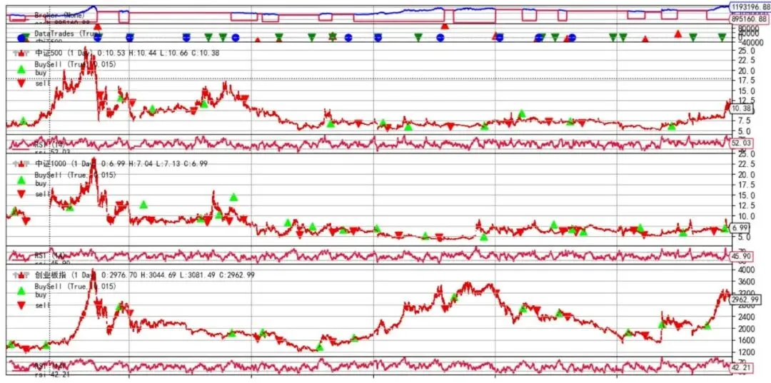 量化的第一步是获取高质量数据。代码中定义了三个主要指数:中证500、中证1000、创业板指。代码展示了如何处理多只股票/指数。Backtrader 允许同时加载多个数据源(Data Feeds),这对于测试投资组合策略至关重要。