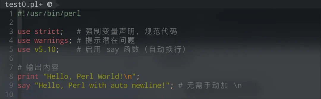 脚本运行:编写 .pl 后缀文件,终端执行 perl 脚本名.pl