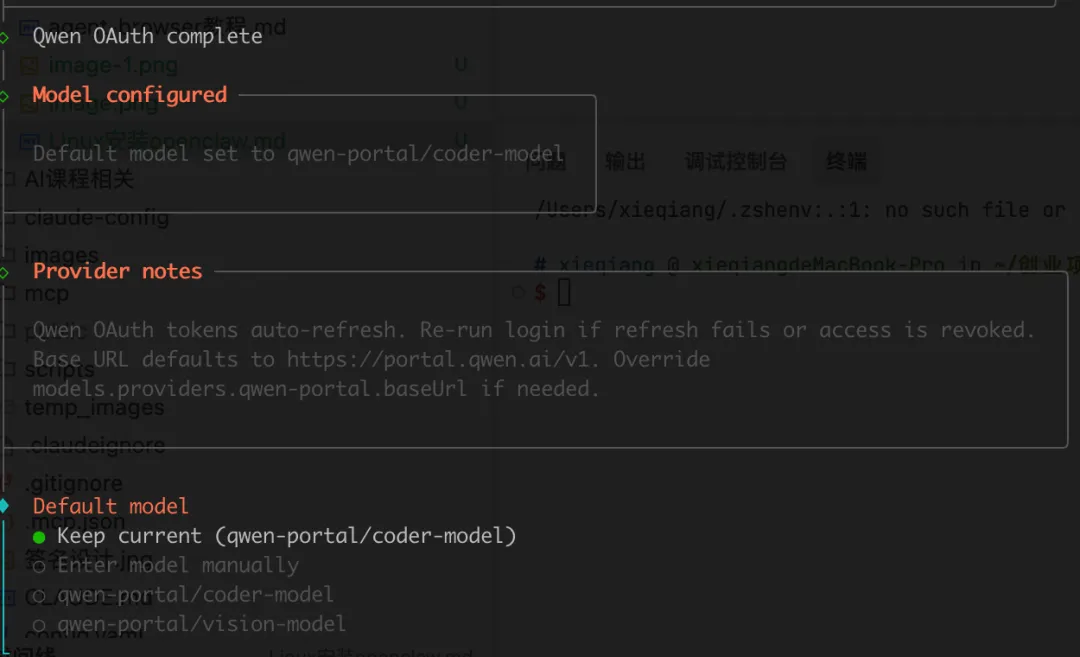 Qwen auth method,回车 ● Qwen OAuth