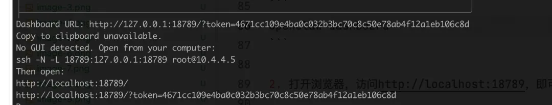你自己的电脑上通过ssh隧道访问服务器上的openclaw控制台页面 ssh -N -L 18789:127.0.0.1:18789 root@你的服务器ip