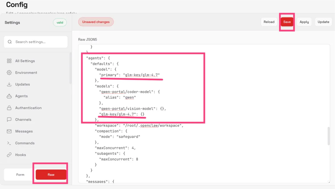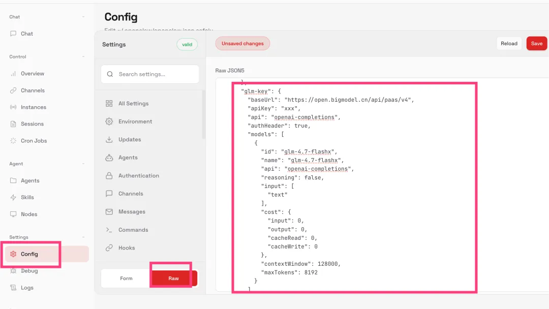 openclaw支持自定义模型,你可以在openclaw控制台页面,配置自己的模型。这里以配置智普GLM为例。