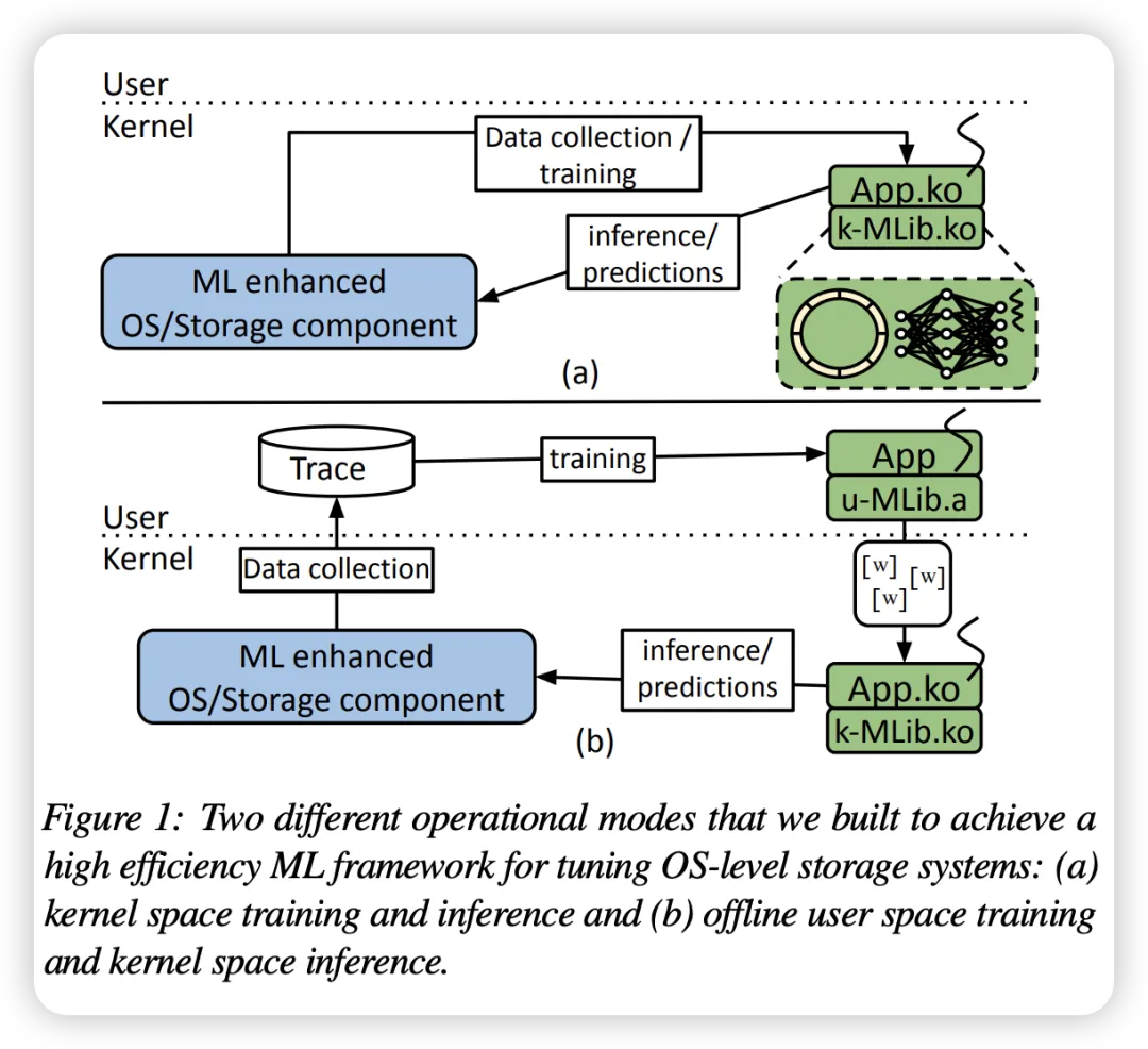 它提出了一种kernel space的机器学习框架,在内核态做推理,用于改善I/O预读、NFS rsize等。