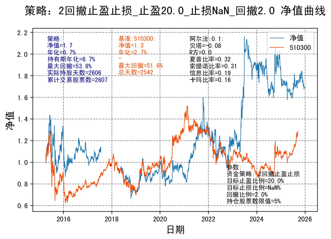 *最佳净值曲线:策略:2回撤止盈止损\n目标止盈比例=20.0\n目标止损比例=nan\n回撤比例=2.0*