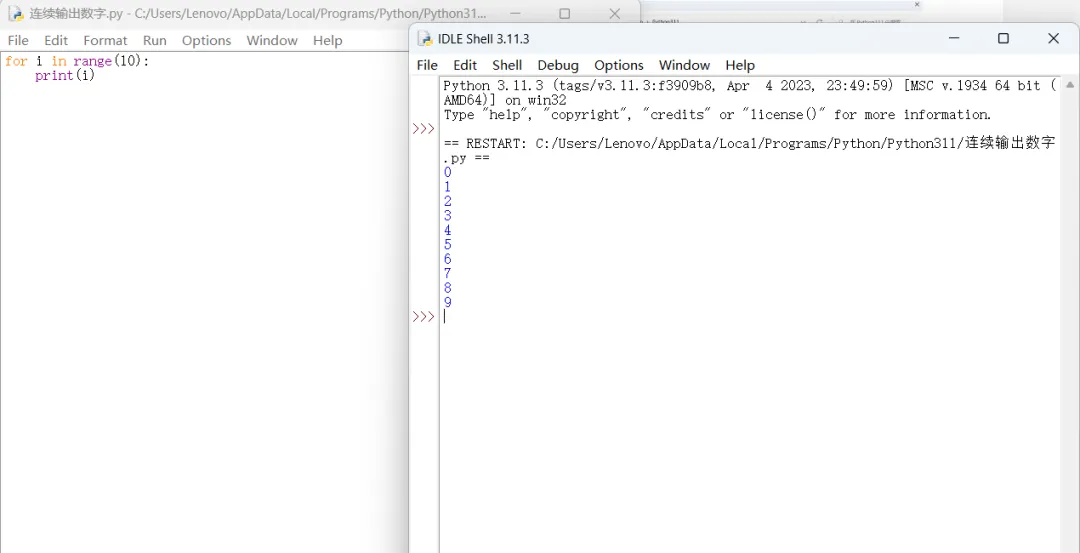 (2)循环体内的 print(i) 需要缩进一个 Tab 键的距离。