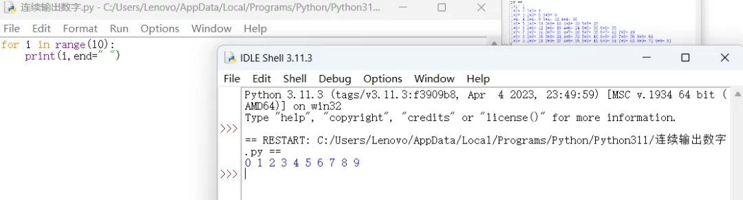 (3)end=" " 中两个引号之间为空格,表示以空格间隔两个数据,可以根据需要把空格换成逗号或其他符号。