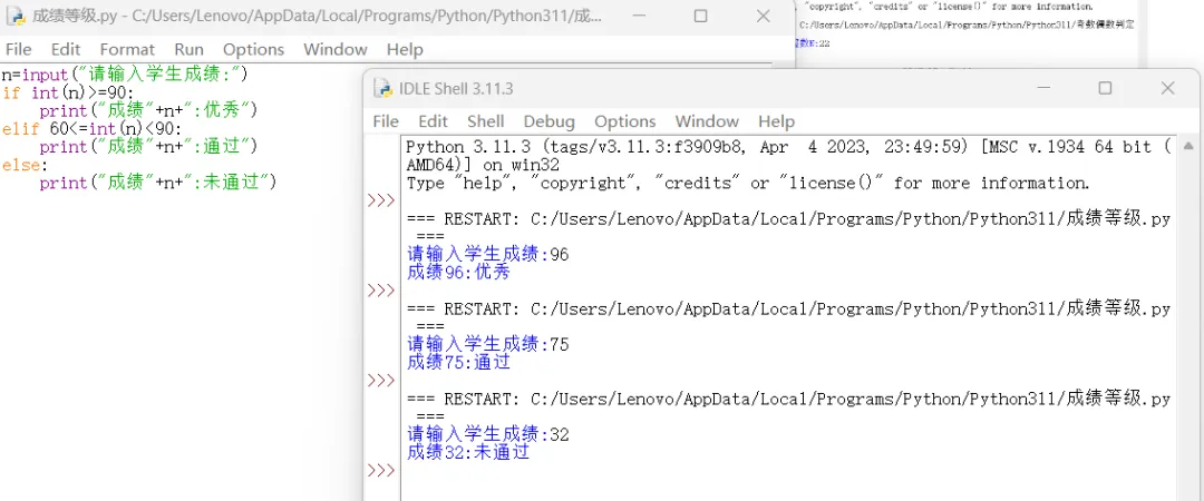(2)elif为当if条件不成立时才执行判断(否则如果)。