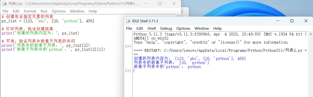 (2)在Python语言中,单个等号“=“表示赋值,两个等号”==“表示等于。说明:本例中代码说明如下。
