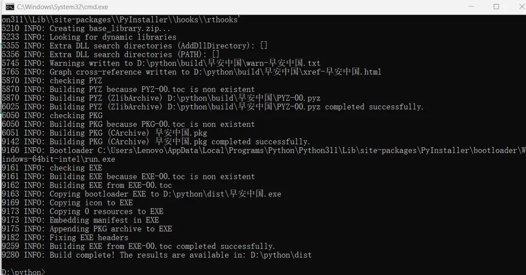 1 | -F | 只在 dist 中产生一个 exe 文件 |