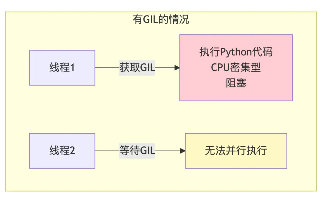GIL是CPython解释器中的一个互斥锁,确保同一时刻只有一个线程执行Python字节码: