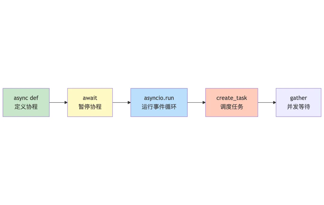 import asyncioasyncdeffetch_data(url): print(f"Fetching {url}")await asyncio.sleep(1) # 模拟网络请求return {"url": url, "data": "some data"}asyncdefmain():# 并发执行多个请求 urls = ["url1", "url2", "url3"] tasks = [fetch_data(url) for url in urls]# 使用asyncio.gather并发执行 results = await asyncio.gather(*tasks)for result in results: print(f"Got: {result['url']}")asyncio.run(main())