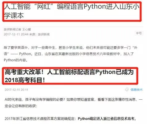 而且,Python也是最简单的编程语言,即使没有任何编程基础,只需一天即可入门,毕竟,连小学生都在学,还将纳入高考!