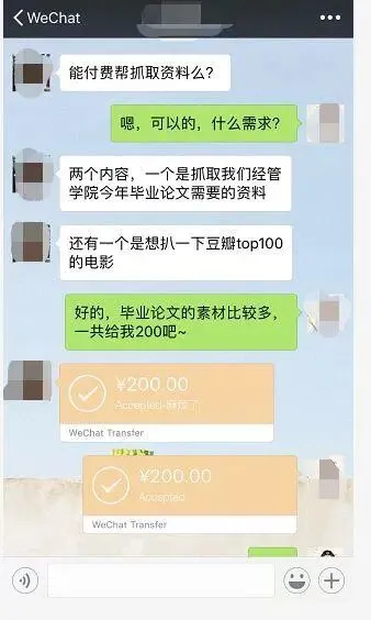 一个非常有生意头脑的商学生,三周学完Python,爬取了学年论文所需要的素材,发了截图在学校QQ群,没想到竟然有同学问他:能不能卖一份给他?