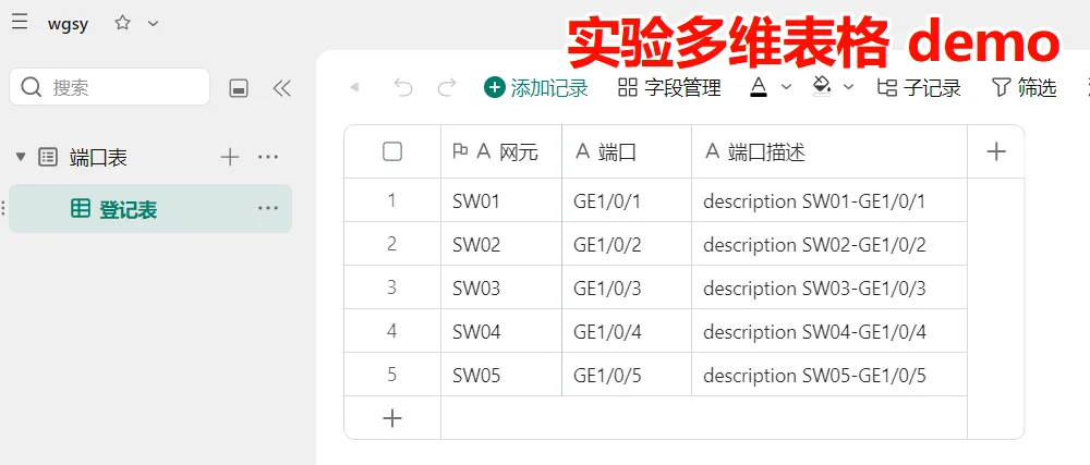 测试顺利,我们成功获取了端口表的记录。至此,无论我们使用 http.client 库还是 requests 库,都已经实现了 Python 脚本与 WPS 多维表格的联动功能。