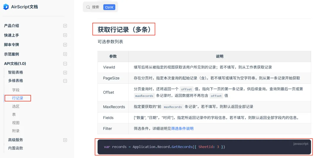 为什么我知道要获取数据表的内容,需要先知道它的表 ID 呢?答案就藏在《AirScript 文档》中。