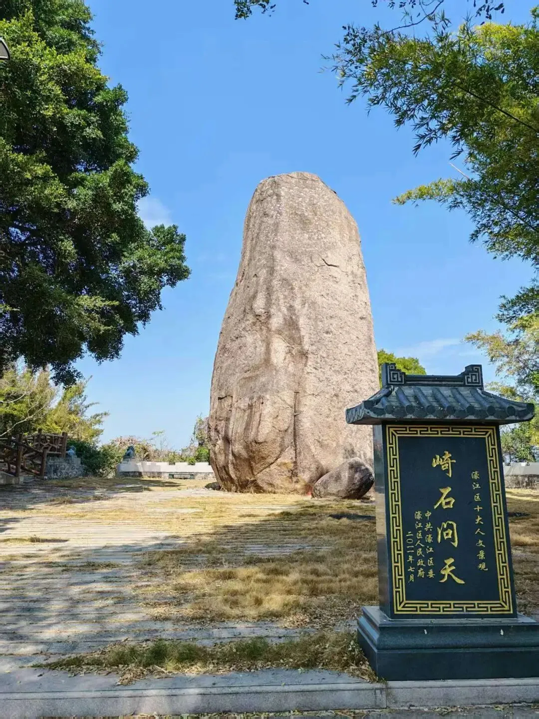 附上广东省汕头市濠江区玉新街道玉石社区“崎石问天”作为配图。巨岩如柱,静立在蓝天下,仿佛在向苍穹诉说着海岛的千年故事。暖阳穿过枝叶,在石板路上投下斑驳光影,海风轻拂,连时光都跟着慢了下来,让人沉醉在这山海相依的诗意里。