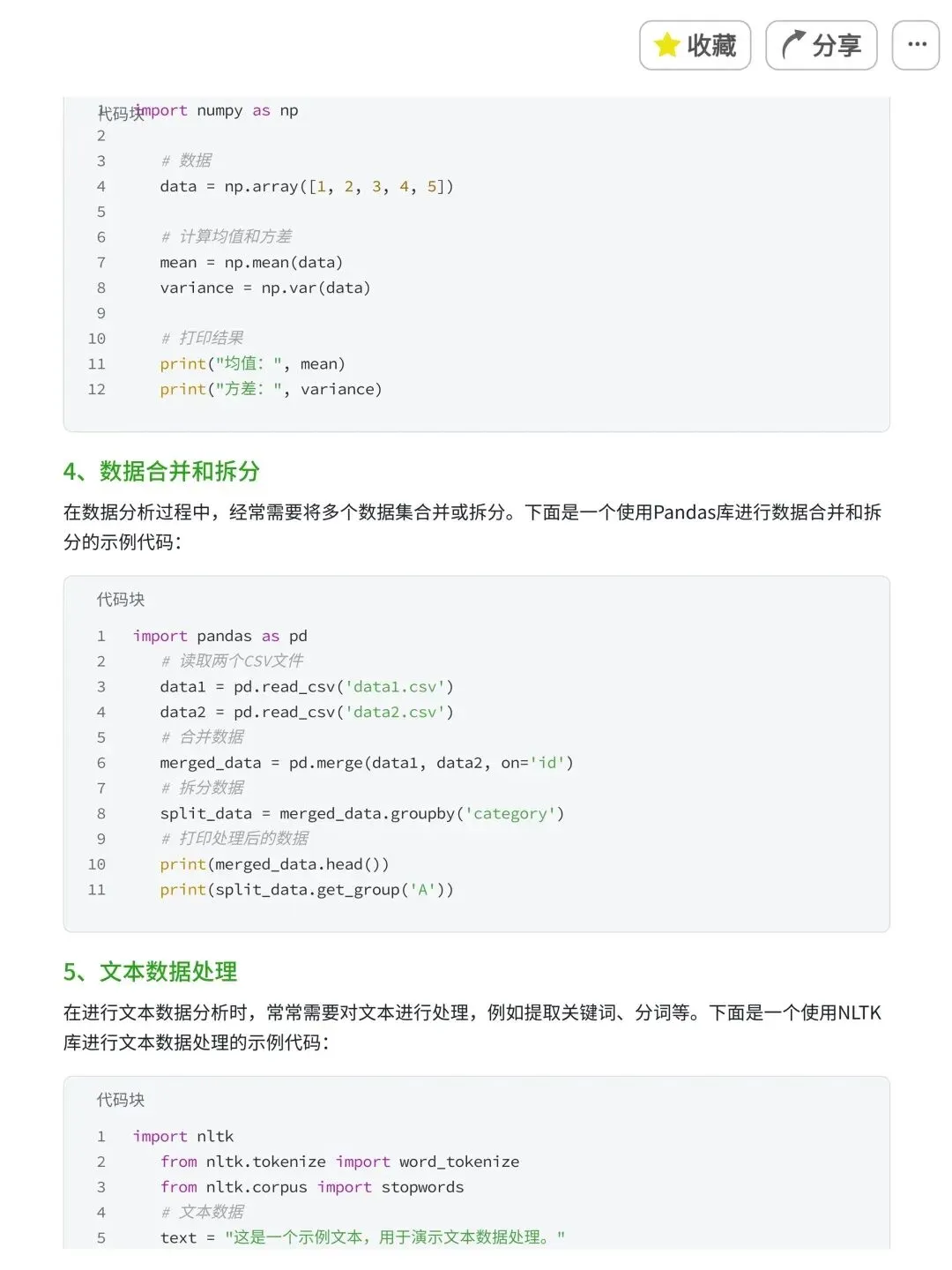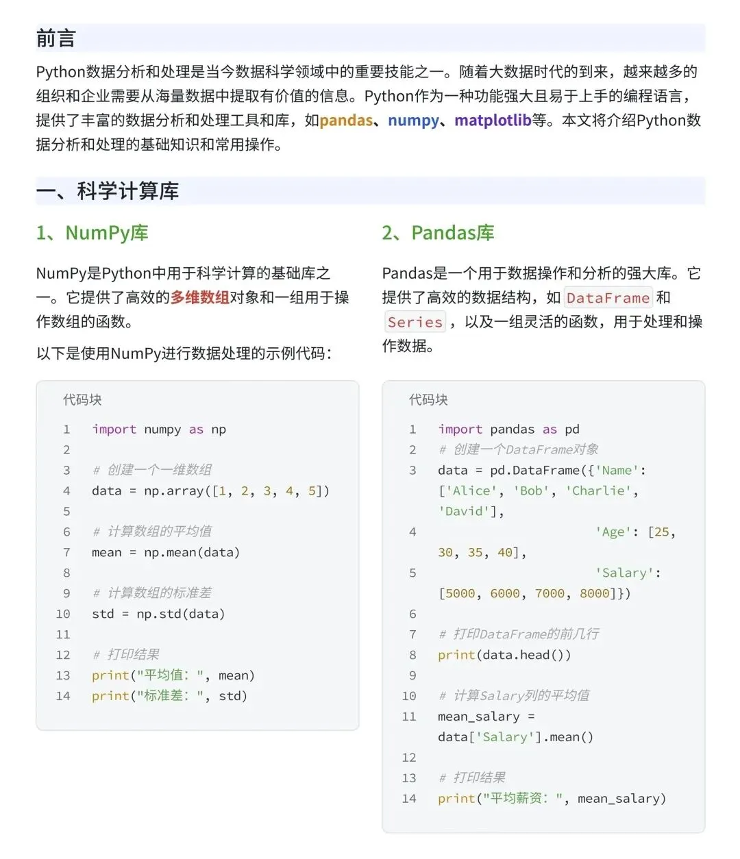 数据清洗作为数据分析中最为重要的一环,所以今日给大家分享的是python,大家对于python并不陌生,那Python数据分析和处理是数据分析师的重要技能之一,帮助我们从海量数据中提取有价值的信息。.🧐其实工作中用到的东西就这几个库,numpy,pandas,等今天就给大家整理了Python数据分析的常用操作代码和常用算法拿走即用,希望本篇文章可以帮助到你们~