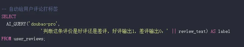 通俗理解:以前调大模型要写脚本 + API 调用;现在,一条 SQL 全搞定。