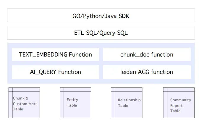 通过 Doris 的 AI Function 和 Python UDF,可在 SQL 中编排 GraphRAG 全流程,无需额外部署图数据库。为降低门槛,字节还提供了 Python/Go SDK,一行代码就能构建 GraphRAG: