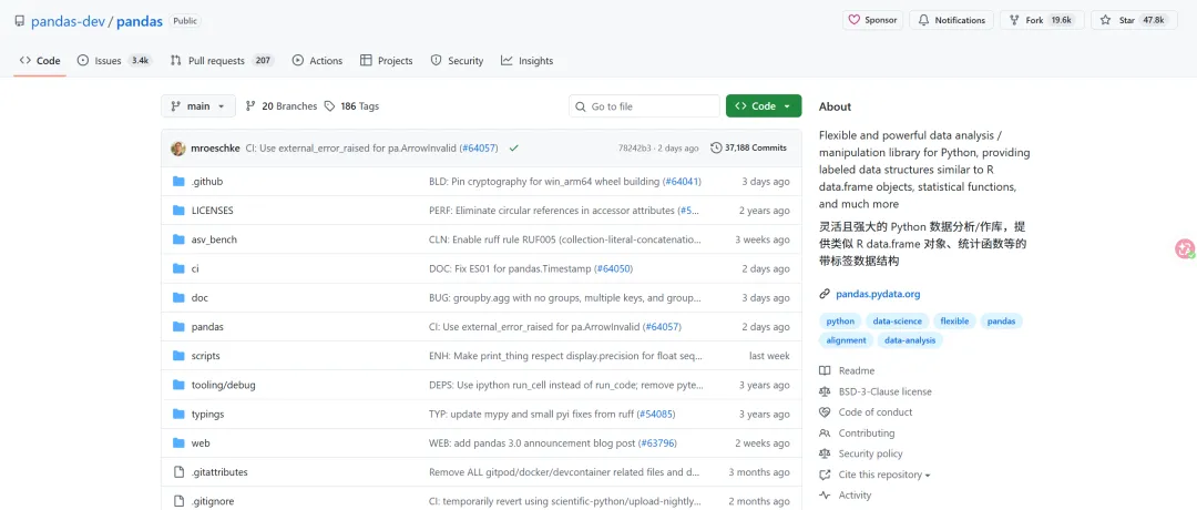 GitHub 地址:https://github.com/pandas-dev/pandas