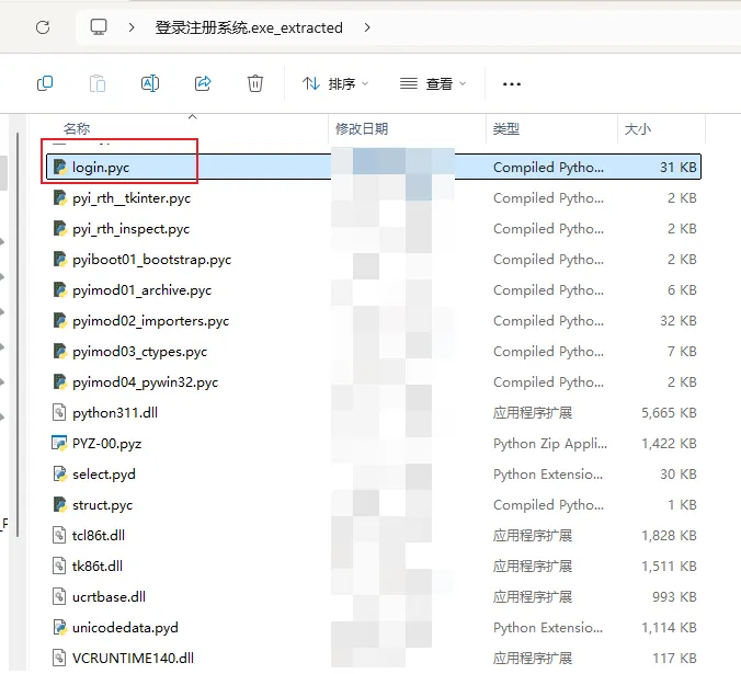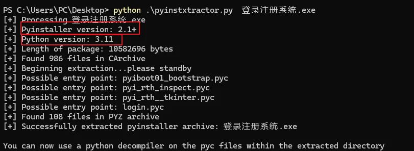 我们把他下载下来,并在控制台执行指令 python .\pyinstxtractor.py 登录注册系统.exe :
