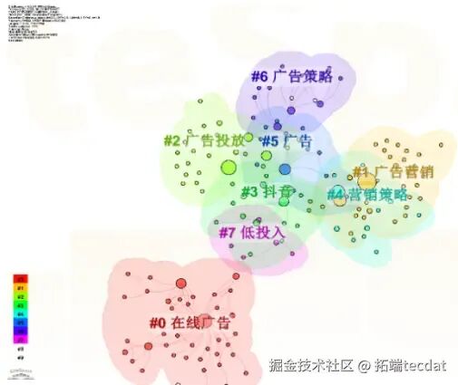 从关键词聚类图谱可见,在线广告与广告营销、投放策略等聚类的交叉性较弱,说明跨维度的系统性研究仍有空白。这些聚类内部一致性高,但交叉领域的探索不足,为本次研究提供了切入点。